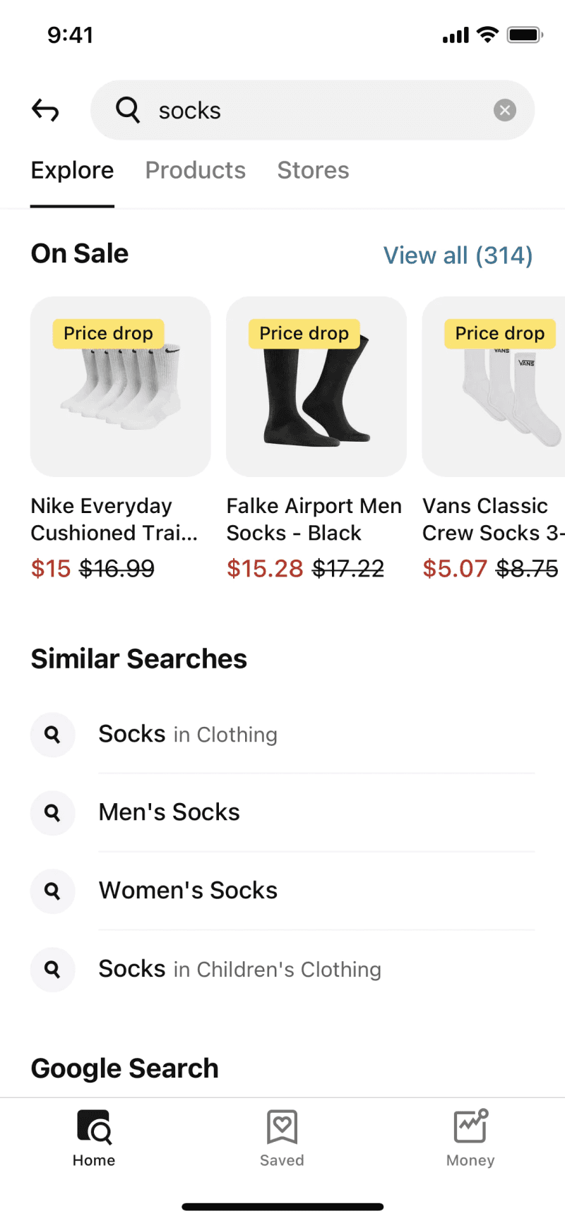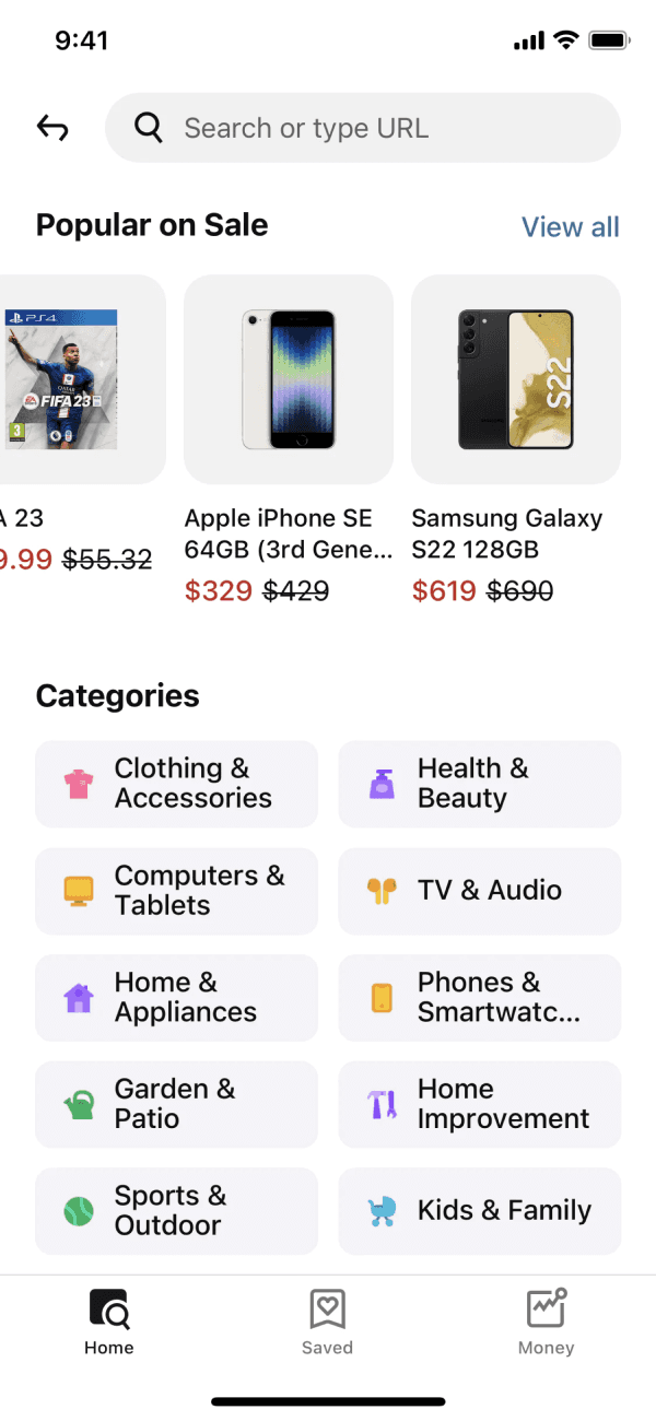 We tweaked the placement of the search bar on home screen to give focus on it.