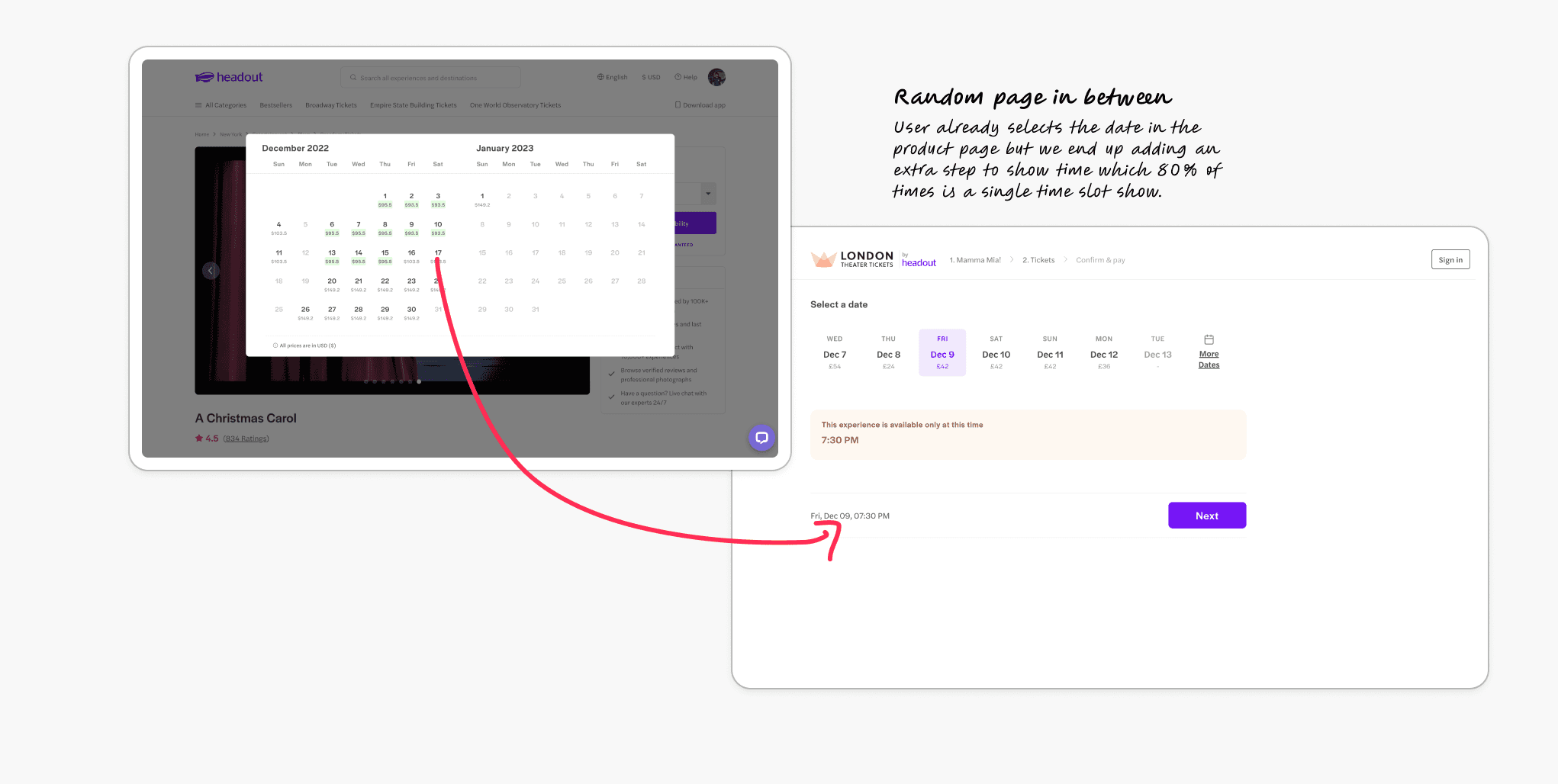 This was one of the first major projects that I picked up after joining Headout and I dove into existing user insights that we had gathered from user interviews as well as going through tons of user session recordings using clarity to figure what the flaws and issues.